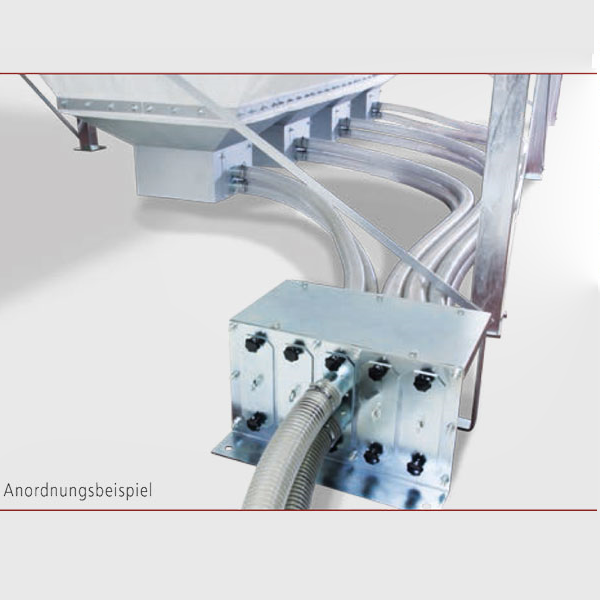 Превключващият блок е особено подходящ за пелетни системи, работещи във всмукателни станции. Благодарение на разнообразните си възможности за свързване на дюзи за всмукване и връщане на въздух с диаметър 50 мм, устройството може да бъде оптимално интегрирано в различни системи.