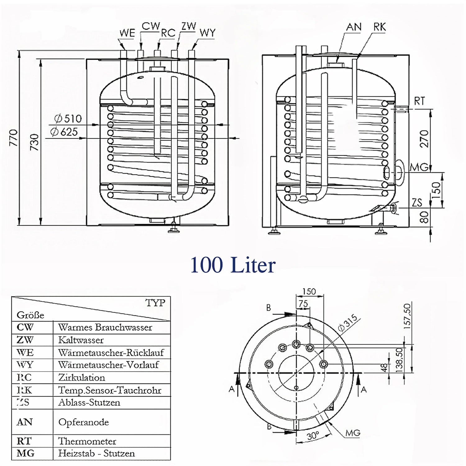 Varmtvandsbeholder 100 L med Incoloy 825 varmeelement 2 kW – drikkevandsopbevaring 🔥