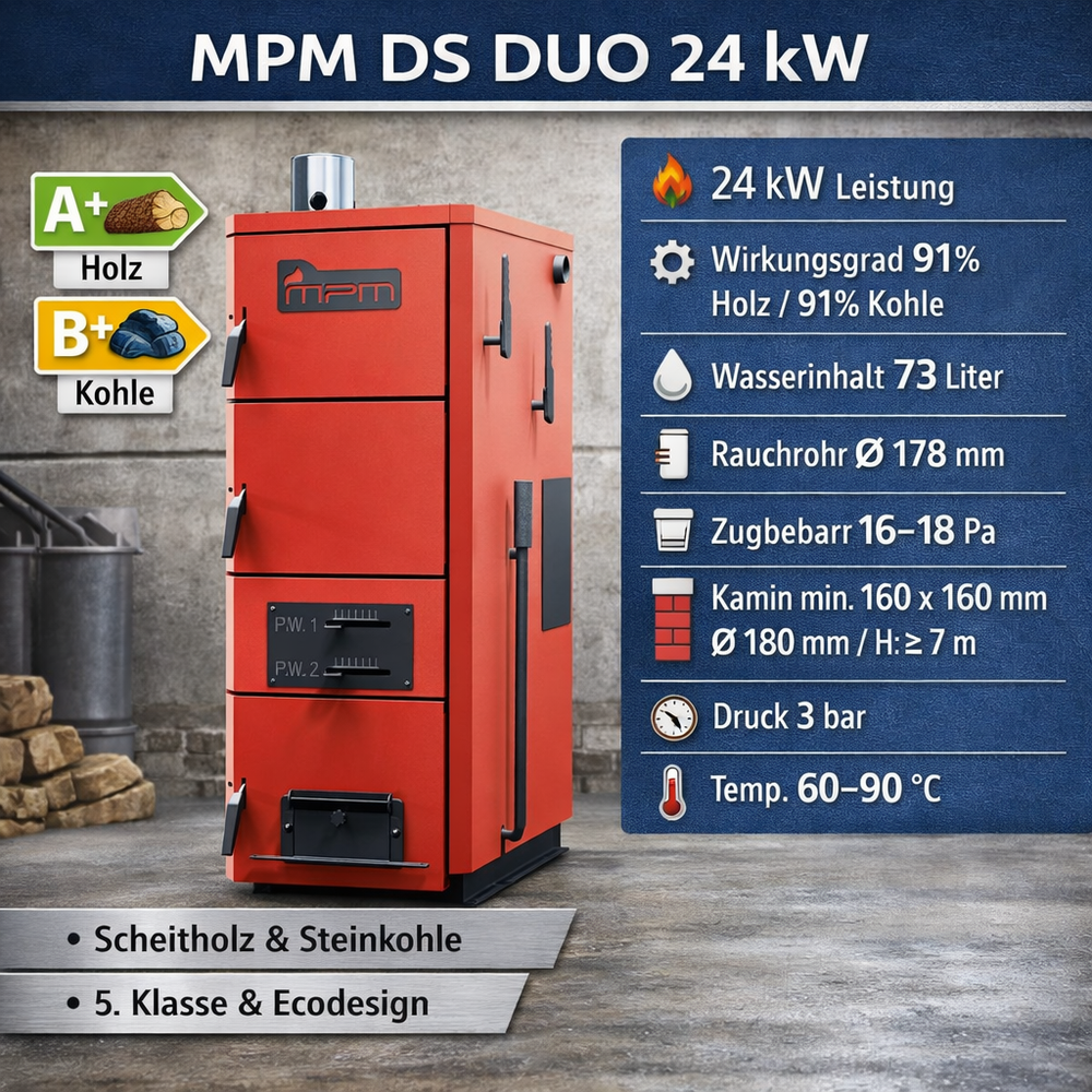 MPM DS Duo 24 kW Holz-Kohle-Kombikessel – Scheitholz & Steinkohle