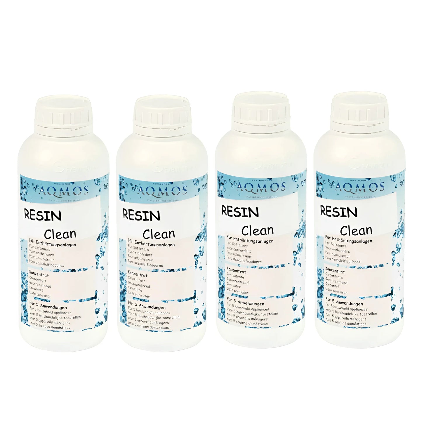 Resin Clean besteht aus demineralisiertem Wasser, Phosphorsäure zur effektiven Ablagerungslösung und Benzalkoniumchlorid als Konservierungsmittel und Desinfektionskomponente. Diese Kombination gewährleistet eine gründliche Reinigung und Sterilisation des Harzbettes.