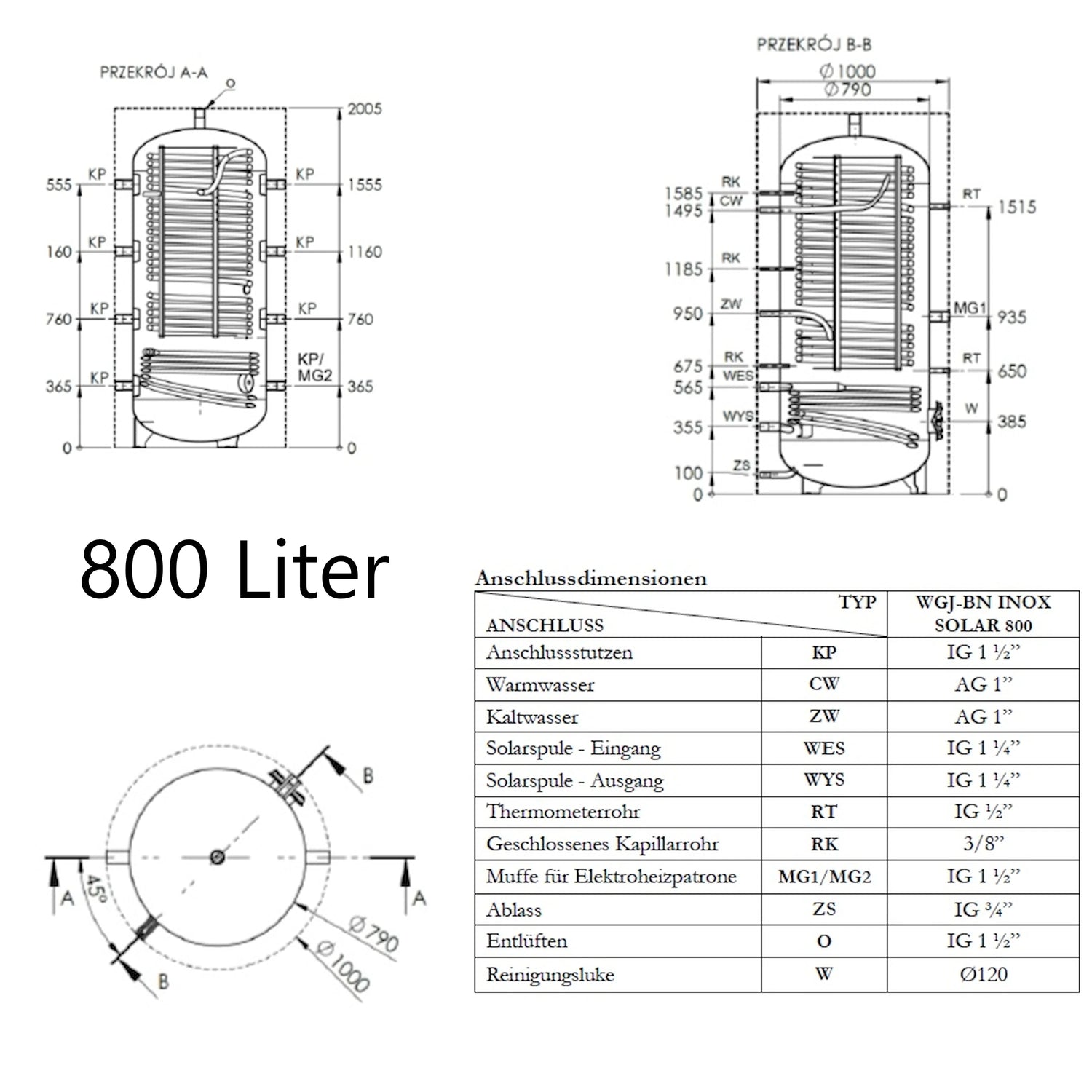 El WGJ-BN INOX SOLAR es adecuado para viviendas y locales comerciales donde se requiere una combinación de almacenamiento intermedio para sistemas de calefacción y preparación de agua caliente sanitaria a demanda. Resulta especialmente ventajoso para sistemas con colectores solares, bombas de calor o calderas convencionales.