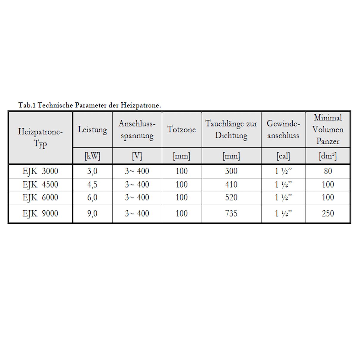 L'élément chauffant a une connexion avec 1 1/2" Filetage extérieur (AG) et compatible avec les ballons d'eau chaude sanitaire et d'eau potable standard. Grâce à sa longueur d'installation compacte de 520 mm et à sa longueur non chauffée de 100 mm, la cartouche chauffante s'intègre rapidement et facilement. Le câble de raccordement de 1,5 mètre fourni garantit une alimentation électrique directe et simple.