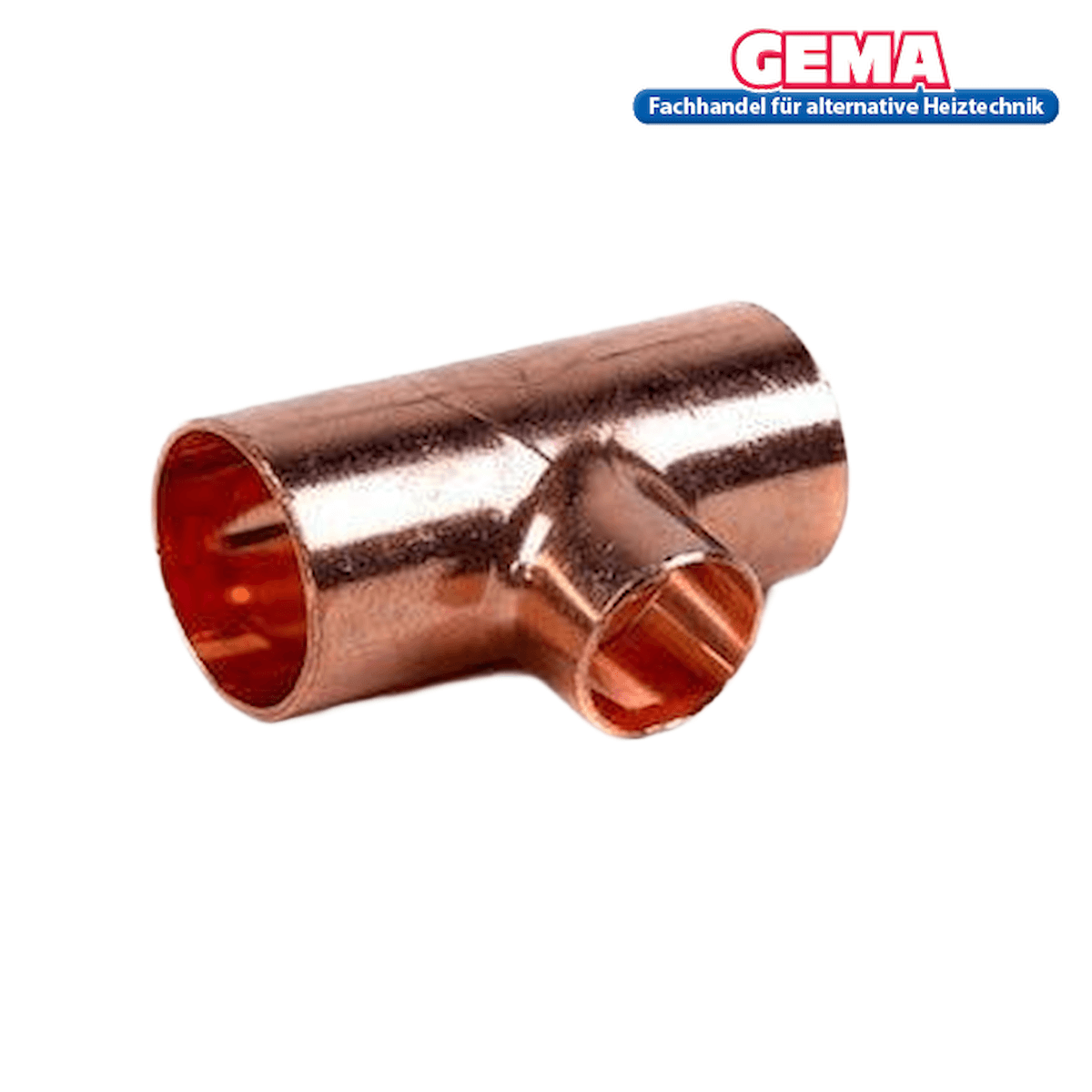 Raccord à souder en T avec deux douilles et une douille réduite pour tubes en cuivre.