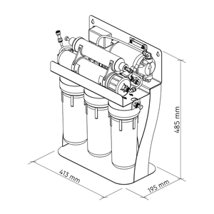 Le cadre métallique autoportant permet une installation rapide et facile sous l'évier ou dans d'autres espaces utilitaires. Tous les raccords, vannes et adaptateurs sont inclus et s'installent sans outils spéciaux.