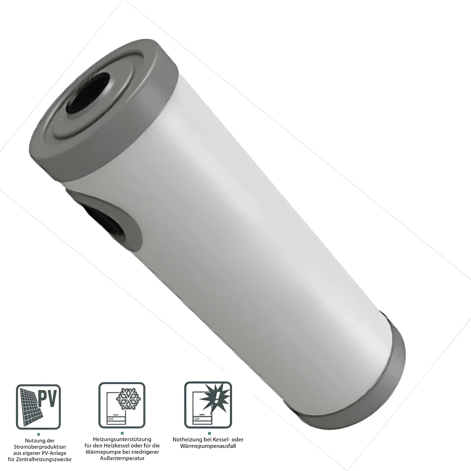 Is féidir an datha téimh a chomhtháthú go simplí i dtanc stórála atá ann cheana féin a bhuíochas leis an 1 1/2" Tacaítear le nasc snáithe seachtrach agus fad suiteála dlúth de 420 mm. Cuireann cábla nasctha 1.5 méadar ar fhad soláthar cumhachta simplí ar fáil freisin.