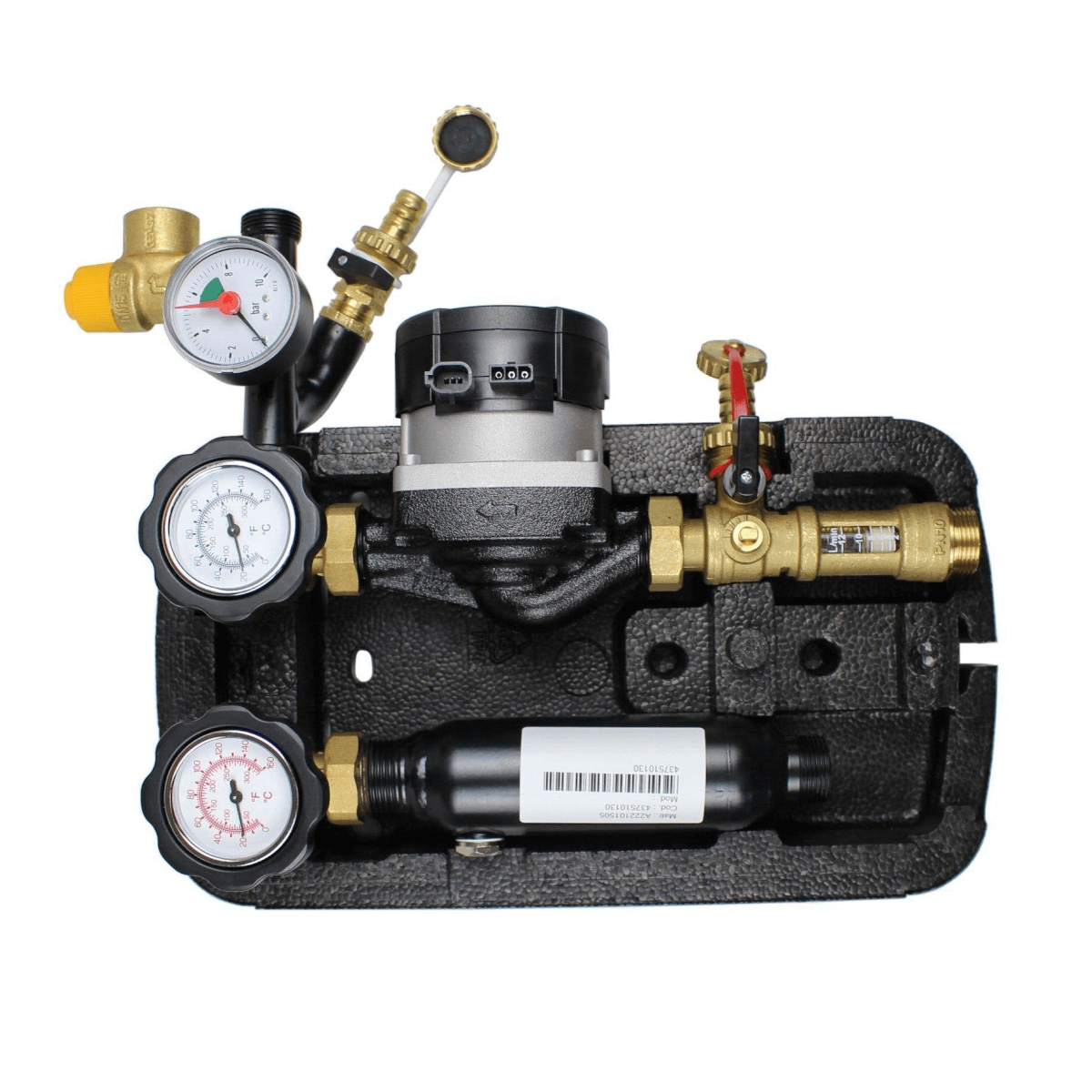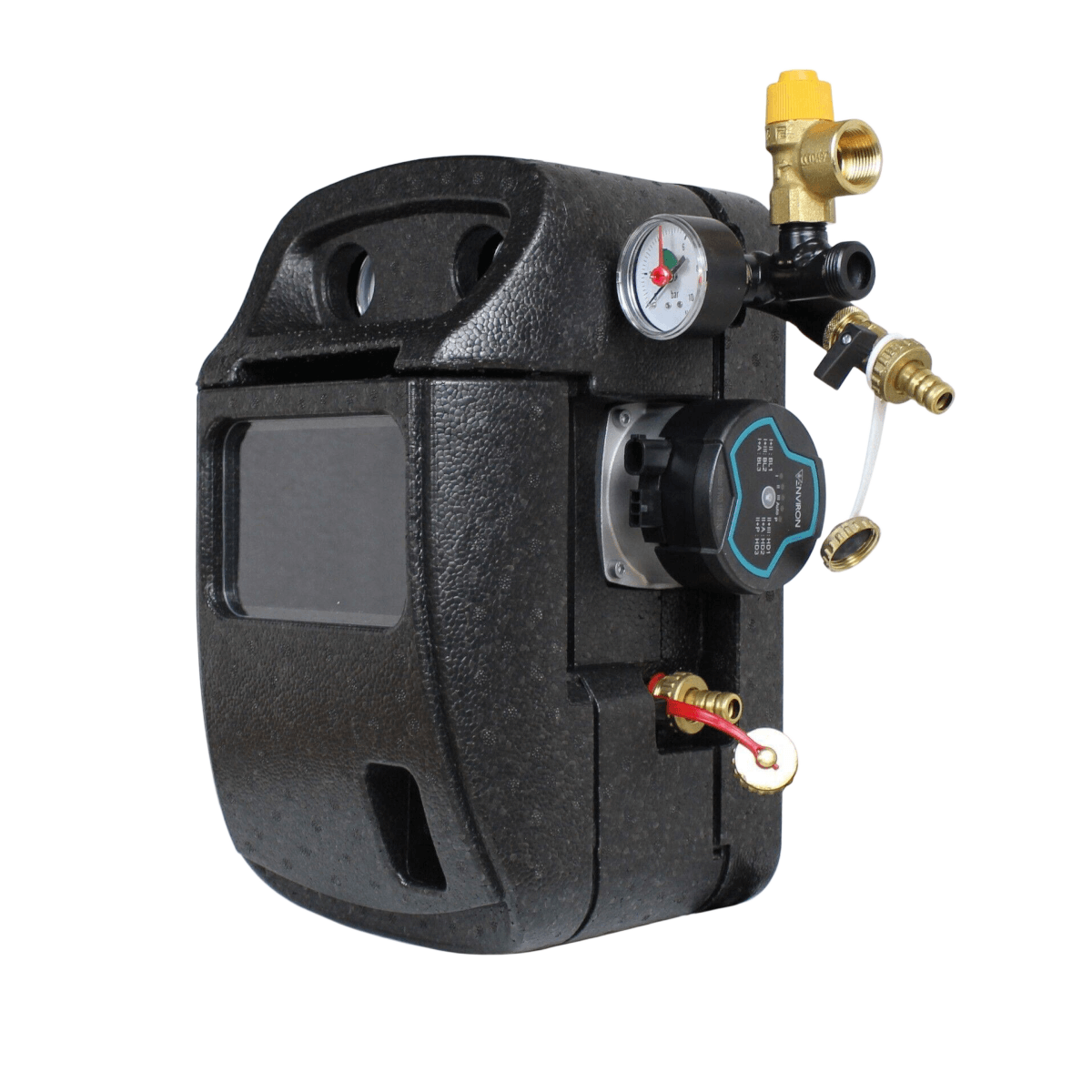 A kialakítás rugalmas csatlakozást biztosít a tágulási tartályhoz, míg az integrált napkollektoros biztonsági szelep és nyomásmérő biztonságos és folyamatos üzemet biztosít. Az oldalsó nyílás a szivattyú hatékony hűtését is elősegíti, ami különösen előnyös folyamatos üzem esetén.