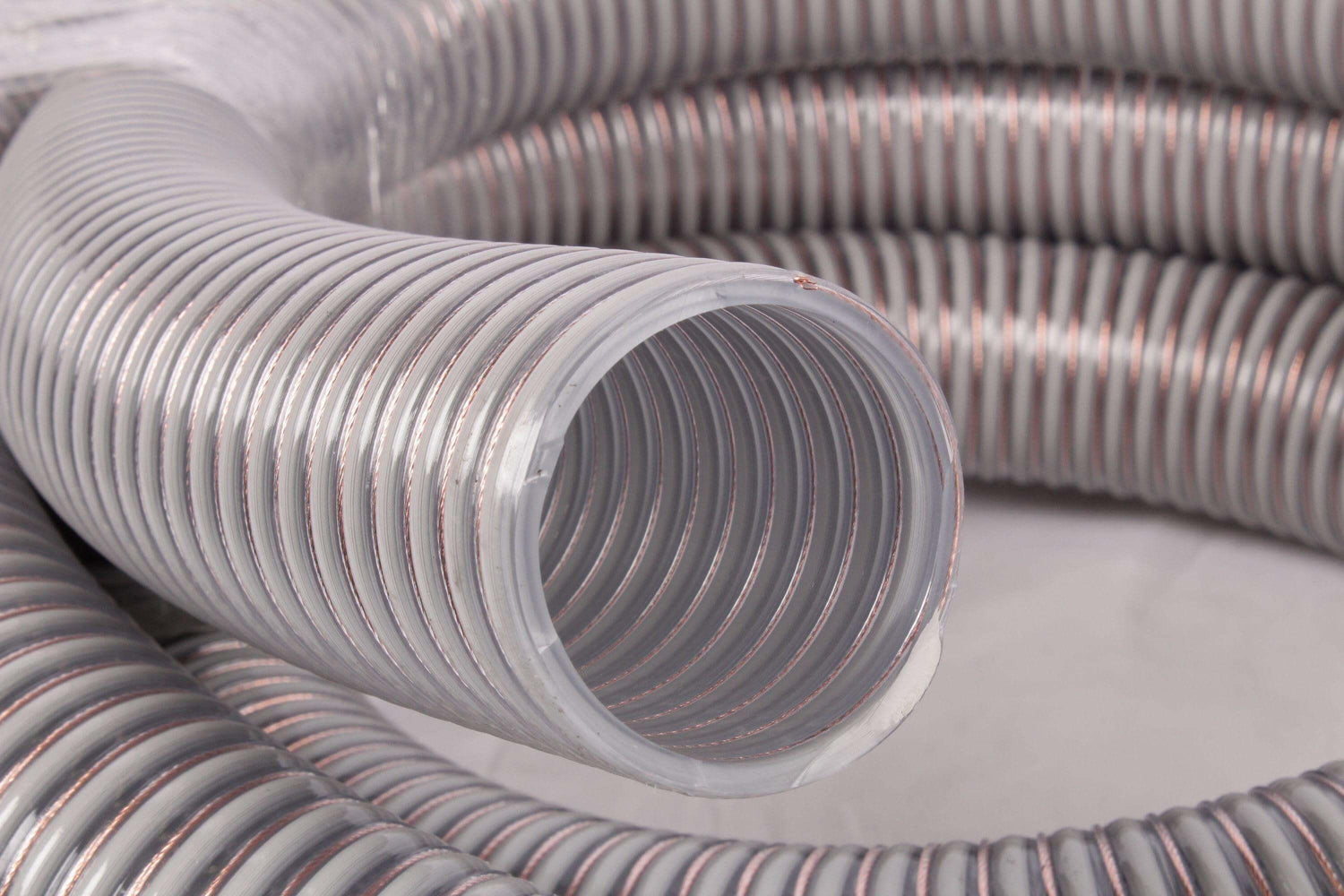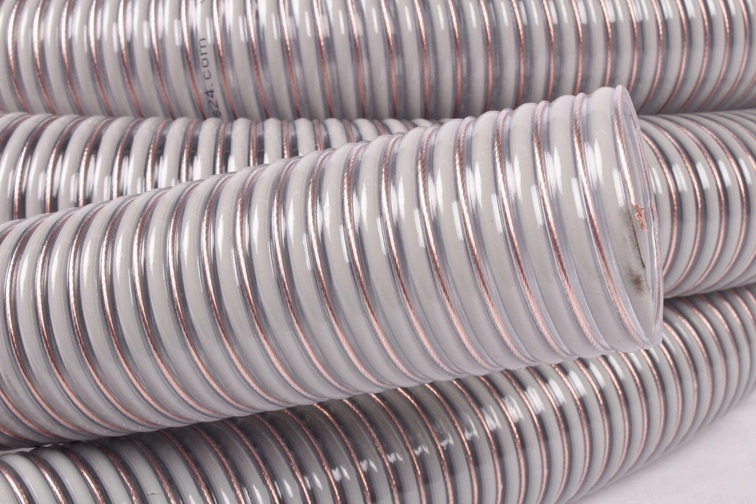 A tömlő antisztatikus, PVC-ből készült, beágyazott merev PVC spirállal és integrált rézszálakkal. Fordítson különös figyelmet a földelésre mindkét oldalon.