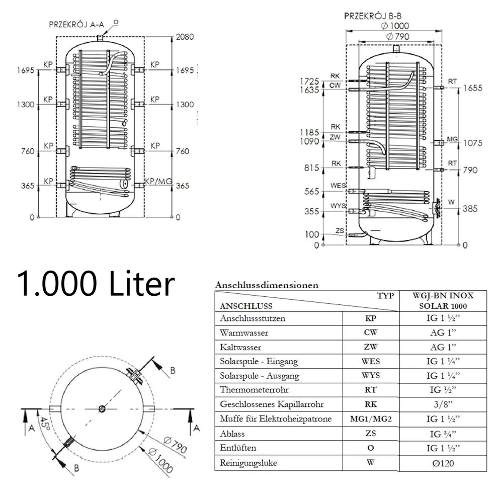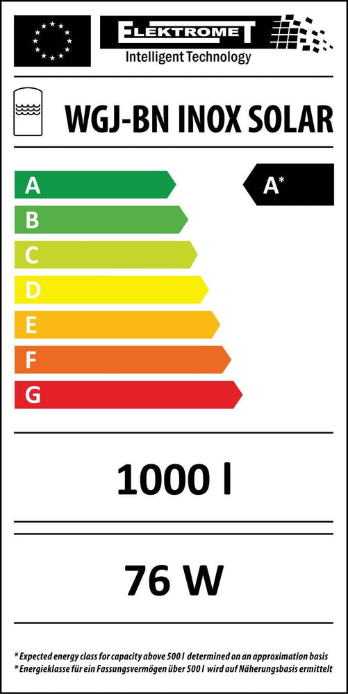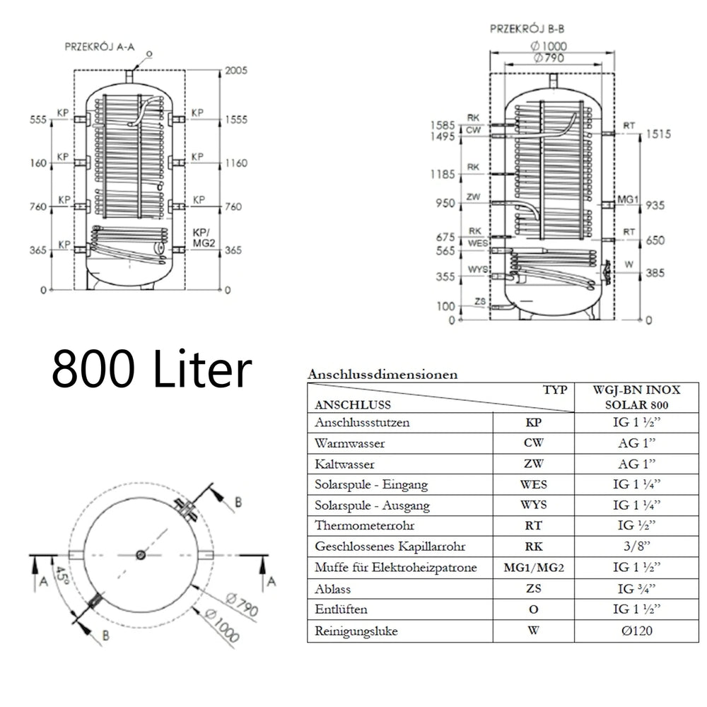 O WGJ-BN INOX SOLAR é um reservatório de acumulação combinado para aquecimento de água e água quente sanitária, com uma serpentina de aquecimento de aço inoxidável integrada como permutador de calor. Foi concebido para integração em sistemas de aquecimento central com caldeiras, bombas de calor ou para utilização de calor solar, permitindo tanto o armazenamento de energia de aquecimento como o aquecimento contínuo de água potável.