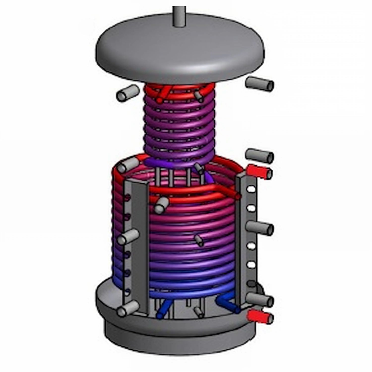 Det korrugerade röret i rostfritt stål fungerar som en sötvattenvärmeväxlare och erbjuder högt flöde och avkastningsvärden tack vare sin stora yta. En extra stor slätrörsvärmeväxlare i tanken finns tillgänglig för sol- och värmeanslutningar och säkerställer effektivt värmeutbyte mellan värme- och dricksvattenkretsarna.